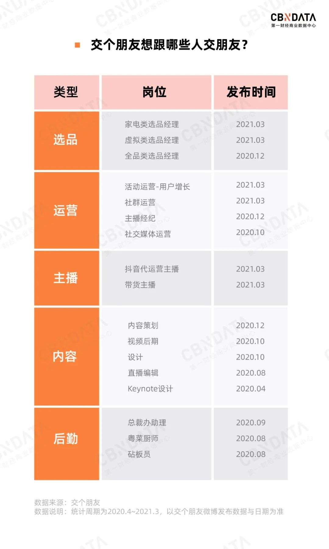 C站盘点了交个朋友的公开招聘信息,可以看出,内容、运营和选品是构成直播团队最重要的三个部分。对于交个朋友来说,具备选品能力是主播的基本素质。