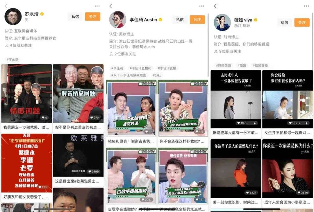 这意味着,带有个人色彩的发言越来越少,卖货相关的宣传越来越多。点进他的微博、微信、抖音,直播预告和视频占据了绝大部分。
