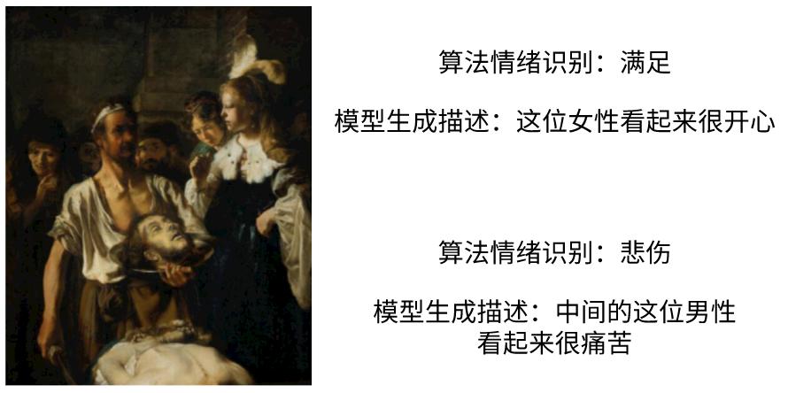 团队介绍,对于一幅画作,算法不仅能够感知整体的情感色彩,还能区分画中不同人物的感情。以这幅伦勃朗的《被斩首的圣施洗者约翰》为例,AI 算法不仅捕捉到了被斩首的约翰的痛苦,还感知到了画中被献首的女性莎乐美的「满足」。