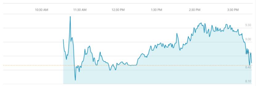 怪兽充电上市首日股价走势(来源:MSN Money)
