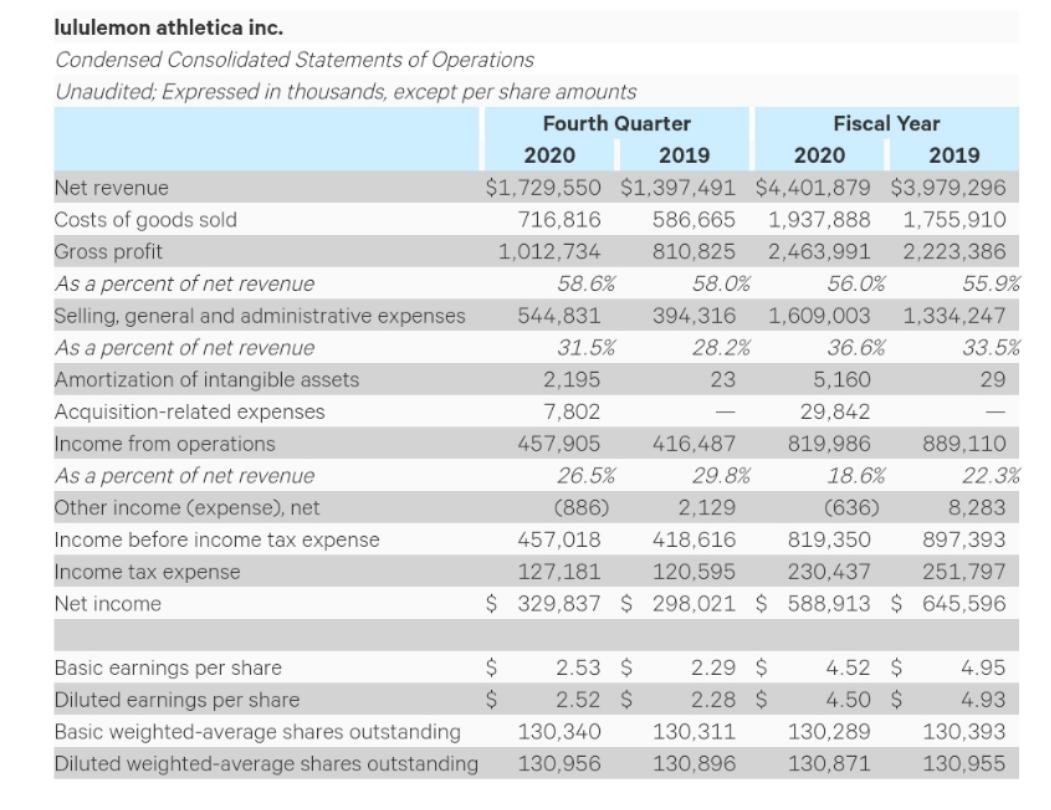 3月30日,lululemon发布了2020财年第四季度和全年(截至2021年1月31日)财报。