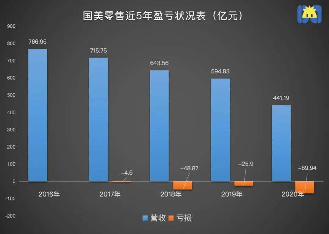 作为家电零售企业,国美难以独善其身。国美零售2020年全年营收441.19亿元,同比下滑25.83%,归属母公司净亏损达69.94亿元,较上年增加63%。
