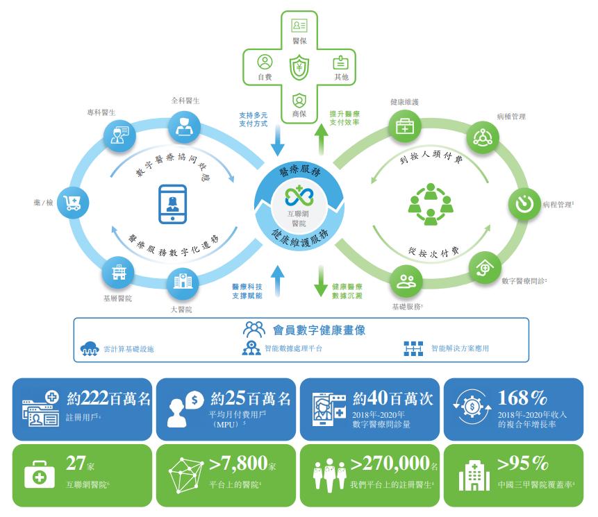 另外,截至2020年12月底,微医连接了中国超过7800家医院,覆盖中国95%以上的三甲医院,实名注册用户2.22亿人,注册医生超过27万名,并拥有一支520人的自有医疗团队。截至目前,微医建立了27家互联网医院,其中已有17家获得医保资质。