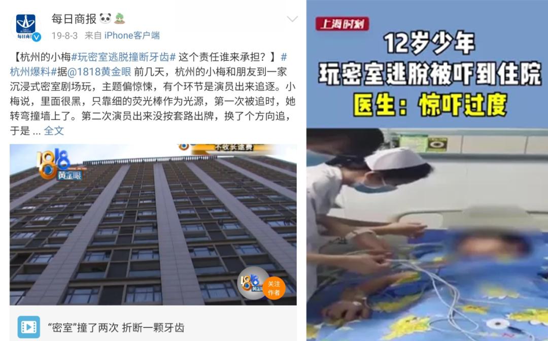 2020年7月,广西南宁也有一位12岁的小孩儿因玩密室逃脱而受到过度的惊吓被送往医院。2019年8月,每日商报也曾有玩家在游戏中被撞断牙齿的报道。
