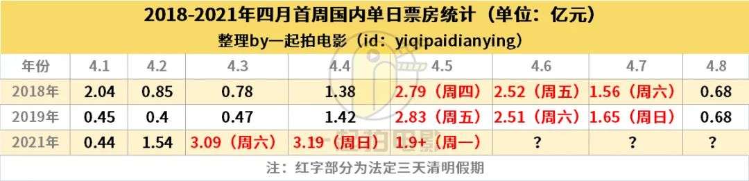 造成这一局面的原因和清明档三天假期的排布,以及公映的影片都有一定关系。