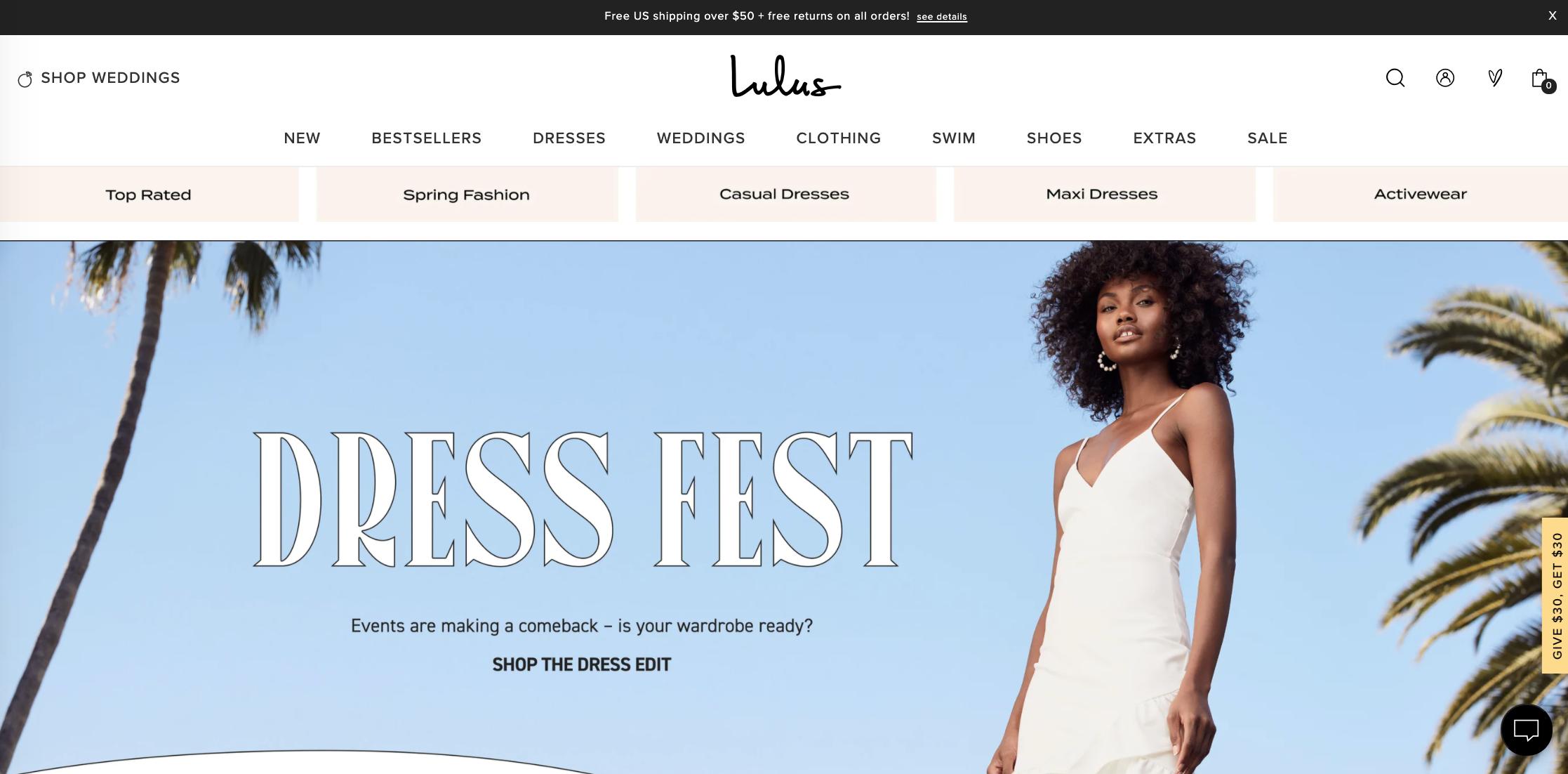 Lulus 官网主页(图片来源:Lulus 官网)