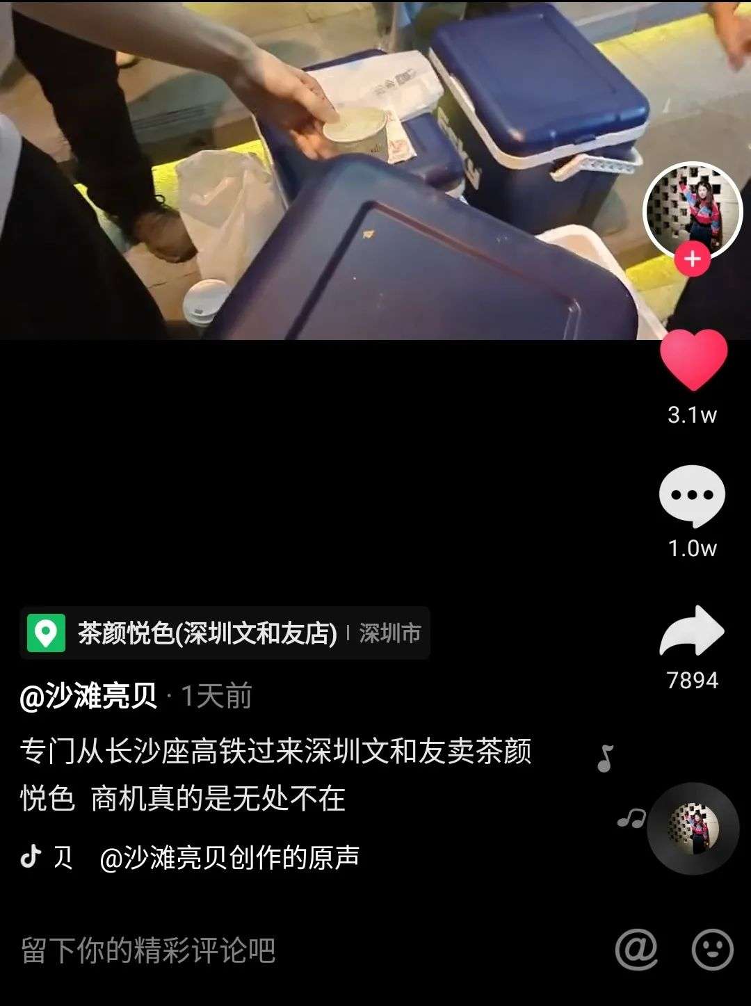 有人据此看到了商机,专门从长沙坐高铁过来深圳文和友卖茶颜悦色。