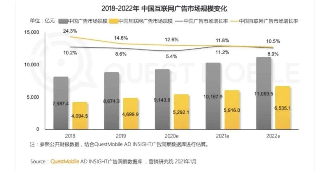 (来自QuestMobile)2018-2022年中国互联网广告市场规模变化