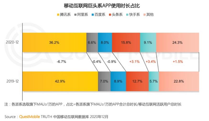 (来自QuestMobile)移动互联网巨头系APP使用时长占比