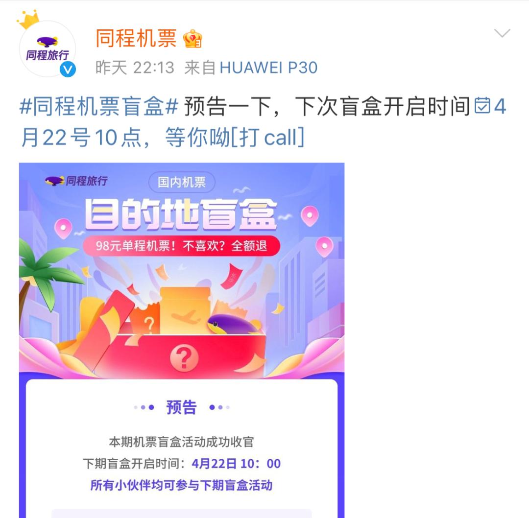 另一方面,观察社交平台上网友晒出的盲盒结果发现,此次活动的出发日期大多为工作日,且行程以小众目的地和短程为主,拆出热门目的地城市的几率并不大,后续是极有可能带来大规模的退订潮的,因此,此次“机票盲盒”活动的后续可操作性,同程旅游包括各平台想要再掀热潮,还需有进一步动作,叠加下一个契机。