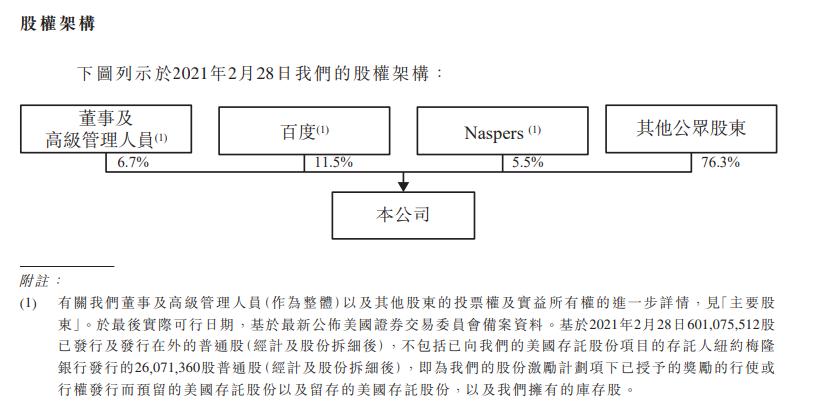 根据携程招股书,在携程二次上市并不影响主要股东的基本结构,目前百度仍是最大权构股东,持股比例达到11.5%。
