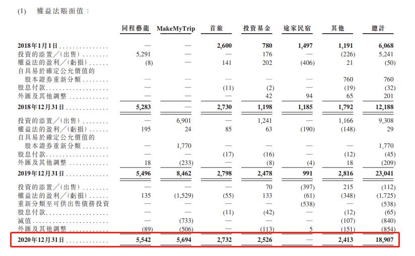 而在投资方面,招股书显示,携程的投资由截至2019年12月31日的513亿元減少7%至截至2020年12月31日的479亿元,主要是由于携程的权益法投资(主要为于MakeMyTrip的投资)产生亏损,此乃因受到新冠病毒疫情的重大影响。
