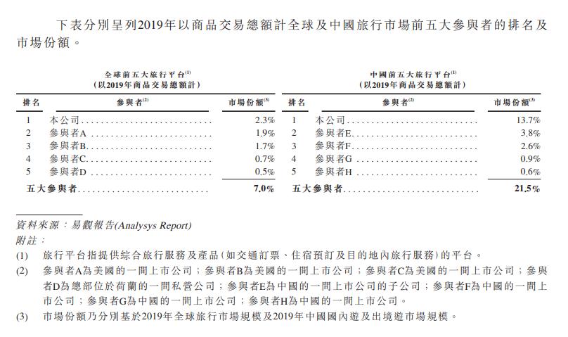 携程招股书显示,按GMV计算携程在全国和中国的市占率均排在第一