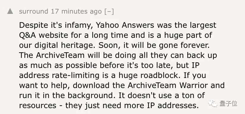 为此,有网友发起号召,希望大家在短期内为ArchiveTeam贡献大量IP地址,在网站关停前尽可能备份多的内容。