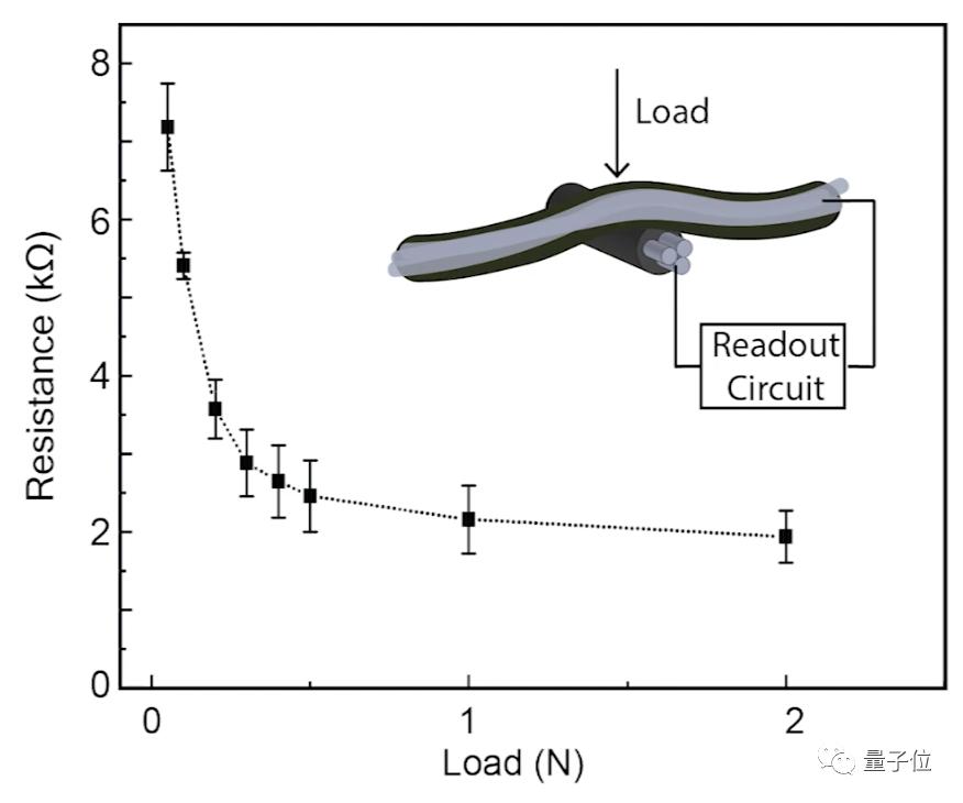 因此,当感知到负载压力的时候,两条线就会相互挤压,里面的传感材料就能通过交叉点,感知到力度的大小。