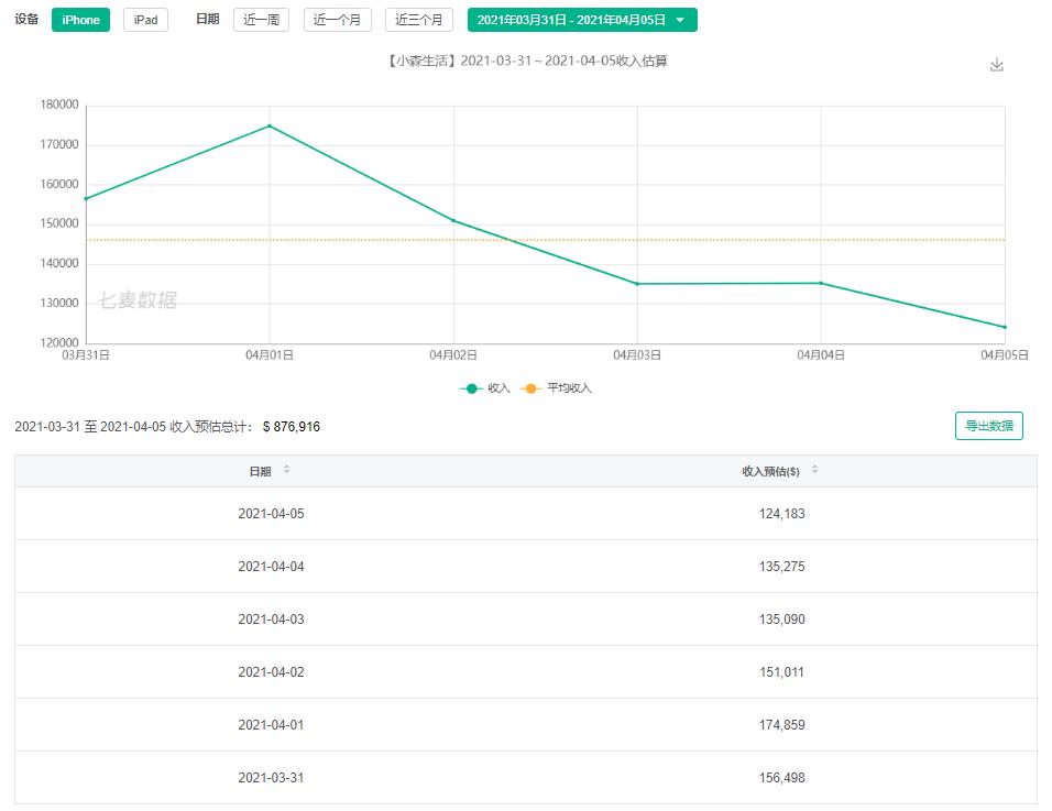 预估收入数据也同样在4月1号下滑,截止4月5日iOS总收入预估约为570万元。