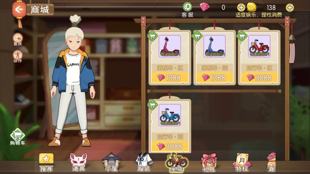 当然游戏里还提供了自行车的载具方便玩家出行,只不过需要3088钻石,约合308元人民币。在当下很少有人花300块买一辆自行车的情况下,《小森生活》提供了又一个“人性化”体验生活的方法。