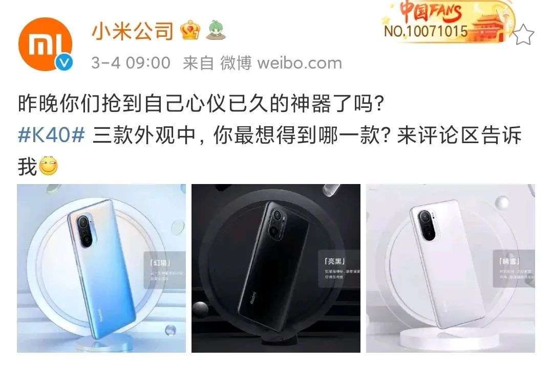 小米官方对红米K40抢购的宣传,图源小米公司官微
