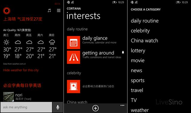 2014 年 4 月,微软在 Build 开发者大会上推出了 Cortana (小娜),它的首发平台是 Windows Phone 8.1,也就是手机移动端,并非 PC 端。不过微软对它的定位可不只是单纯的语音助手,而是「智能个人助理」。在我看来,这两者的区别关键在于主观能动性上,首次启动小娜时,她就会主动了解你的信息,比如称呼、家庭或公司地址、喜欢的明星、关注的新闻领域、出行安排等等,把这些信息整合起来,小娜会适时给出你建议。