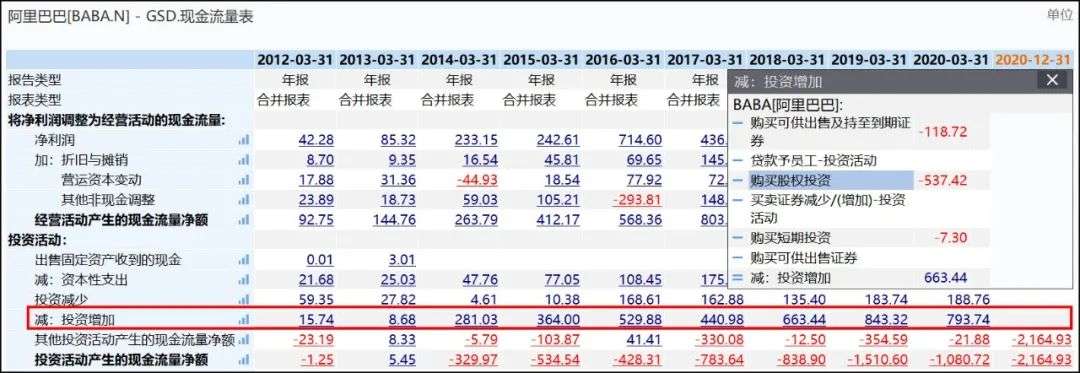 2)阿里买买买获得基础设施。与京东截然不同,阿里的做法是通过扫货线下零售,高鑫零售、银泰百货等,2014-2018财年是扫货高发期。所谓新零售补齐最后1km,买买买本质上买的是基建,当然粗暴的补短板行为对业绩有一定的反噬,新零售拉低其零售商业的盈利能力。此外,阿里的资本性支出也很高,但大头是云计算IaaS,与电商业务关联度不大就不多说了。