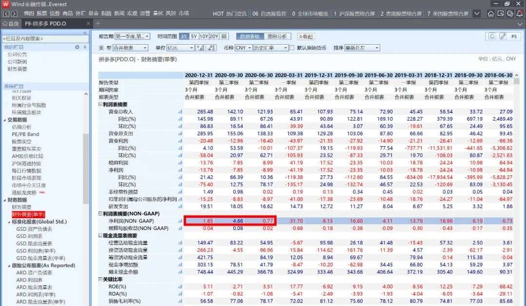 2020年拼多多NON-GAAP净亏损29.7亿元。