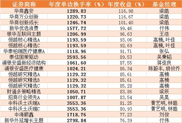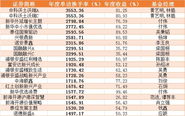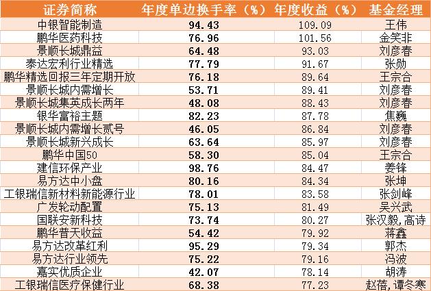 华商、新华、浦银安盛、恒越等基金公司旗下的一批基金,在2020年度高换手率的情况下也获得了远远超出同类型基金平均收益率的回报。