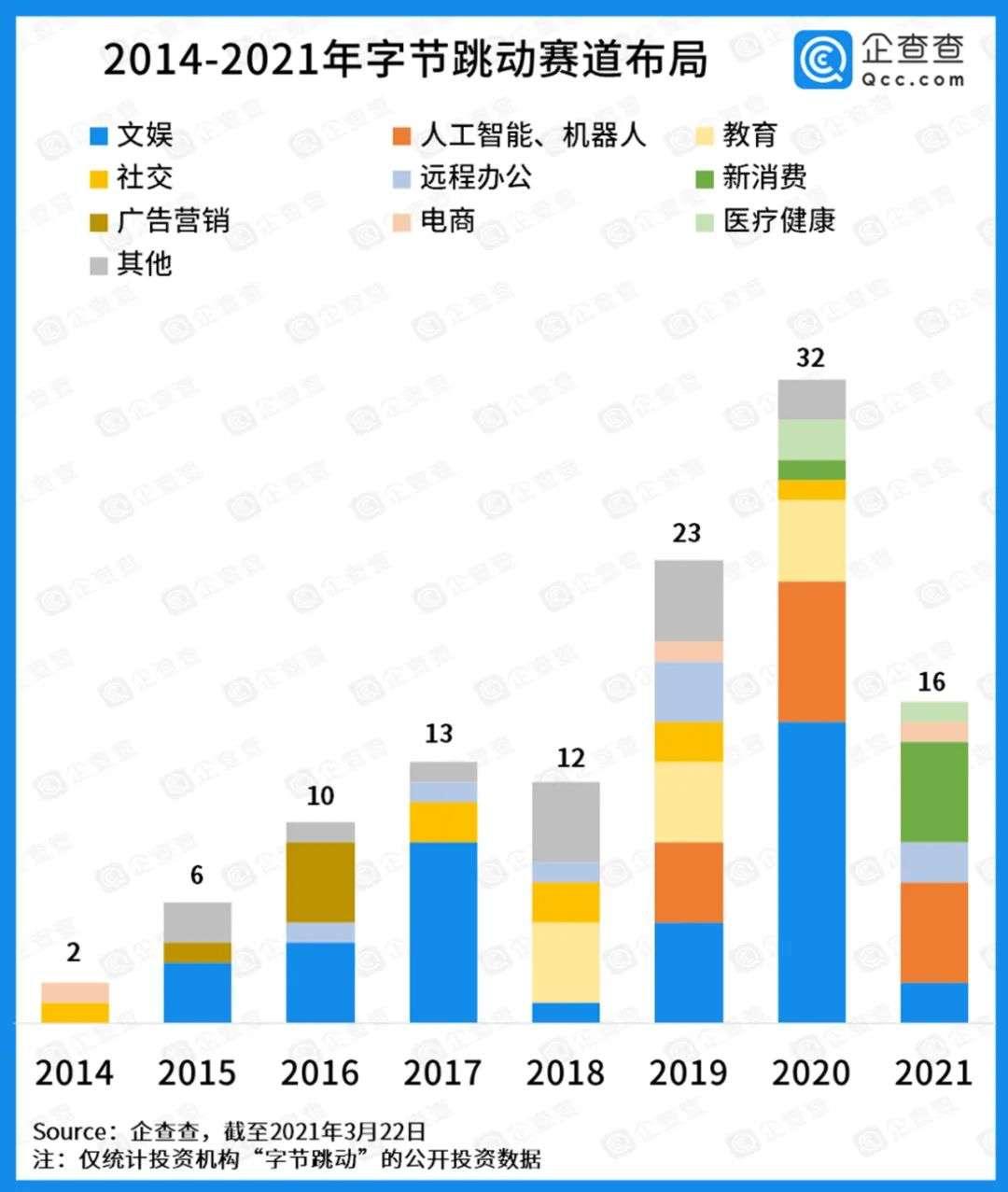 字节跳动不断在追逐风口,查看其2021年的16笔公开投资,均是发生在热门赛道。