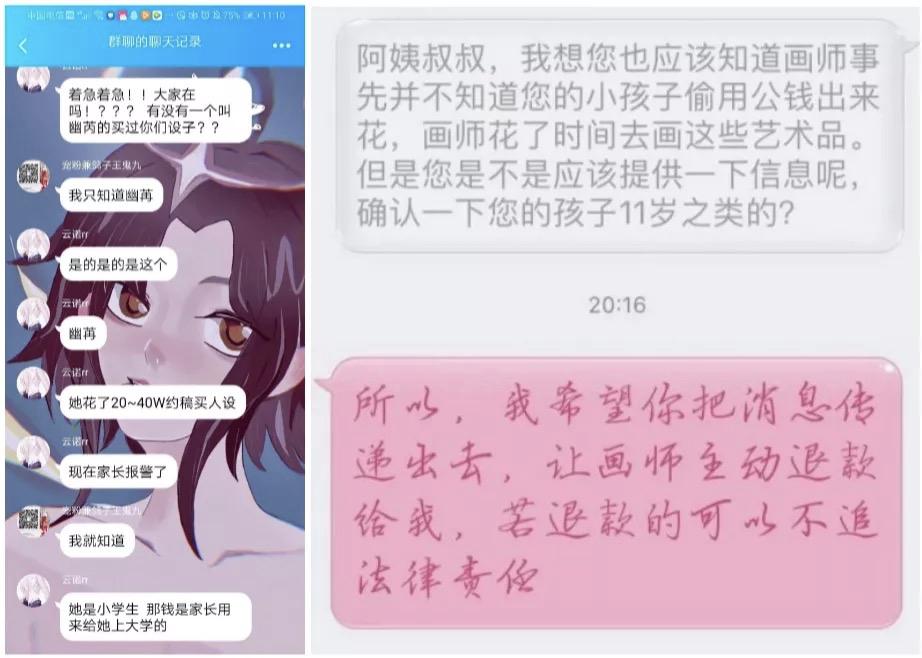 同时,像开头提到的「白琴」事件一样,孩子花天价买图,父母追讨的案例也不少: