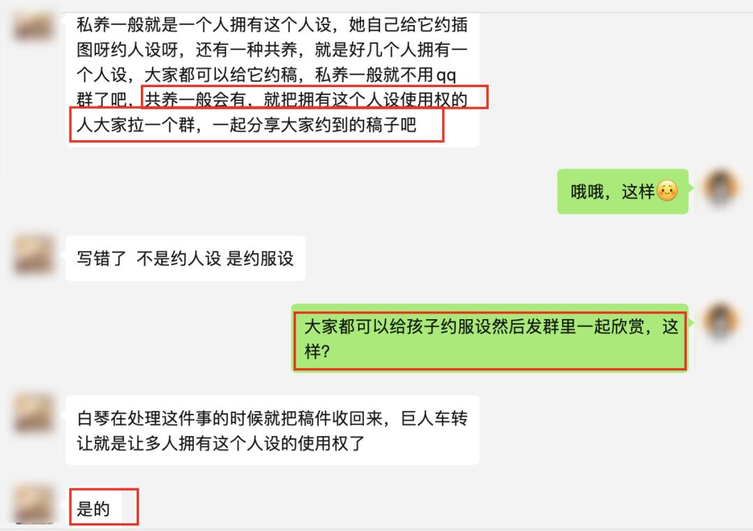 “共养”是指好多人拼单让画手画人设,他们在一个群里,同时拥有这个设子;