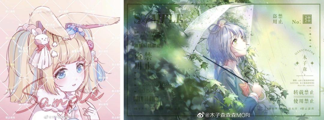 如果是画手自己发图售卖,也会加特别厚的水印,比如这样: