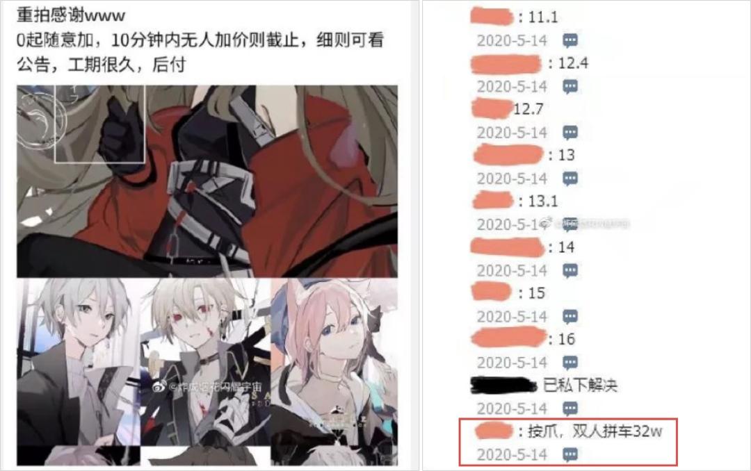 另一种人设是画手直接把人设图画好,然后放出来拍卖,由价高者拍得。