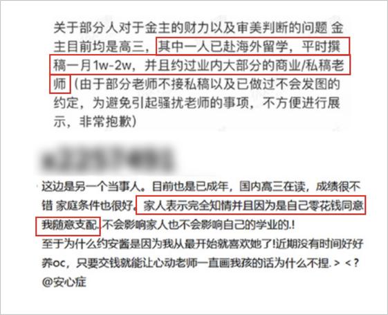 比如,上面提到的那两位花 35w 约稿的玩家,就是两个家境富裕的留学生,这些钱对他们来说只是“零花钱”。
