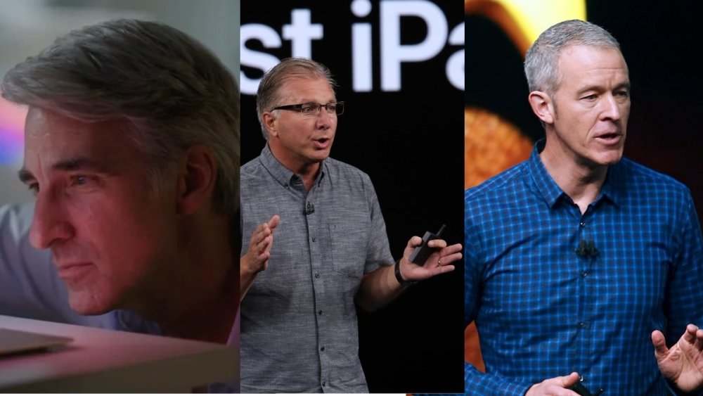 从左到右分别是库克、乔布斯以及菲尔·席勒
