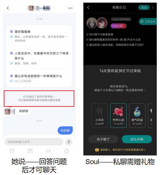 限制私聊次数:如「Soul」限制私聊次数,能在一定程度提高女性用户的体验。若仍想私聊,则需送礼物,这是一个不错的商业化方式。