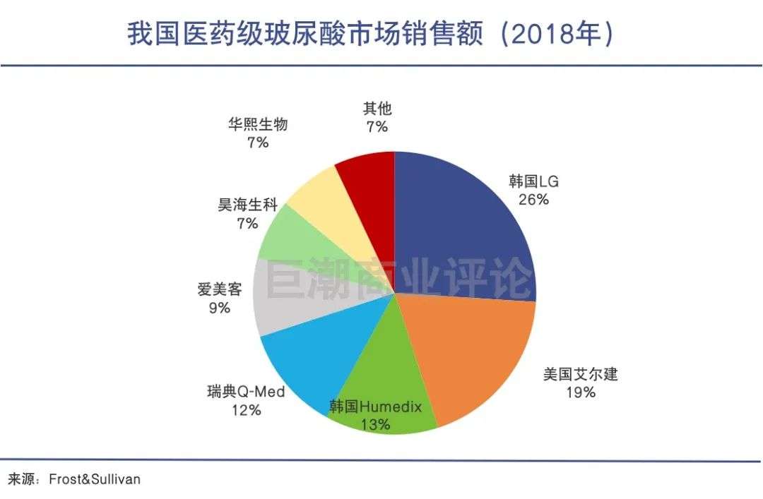 根据Frost&Sullivan的数据,爱美客在2018、2019年玻尿酸国内品牌中销售占比蝉联第一。