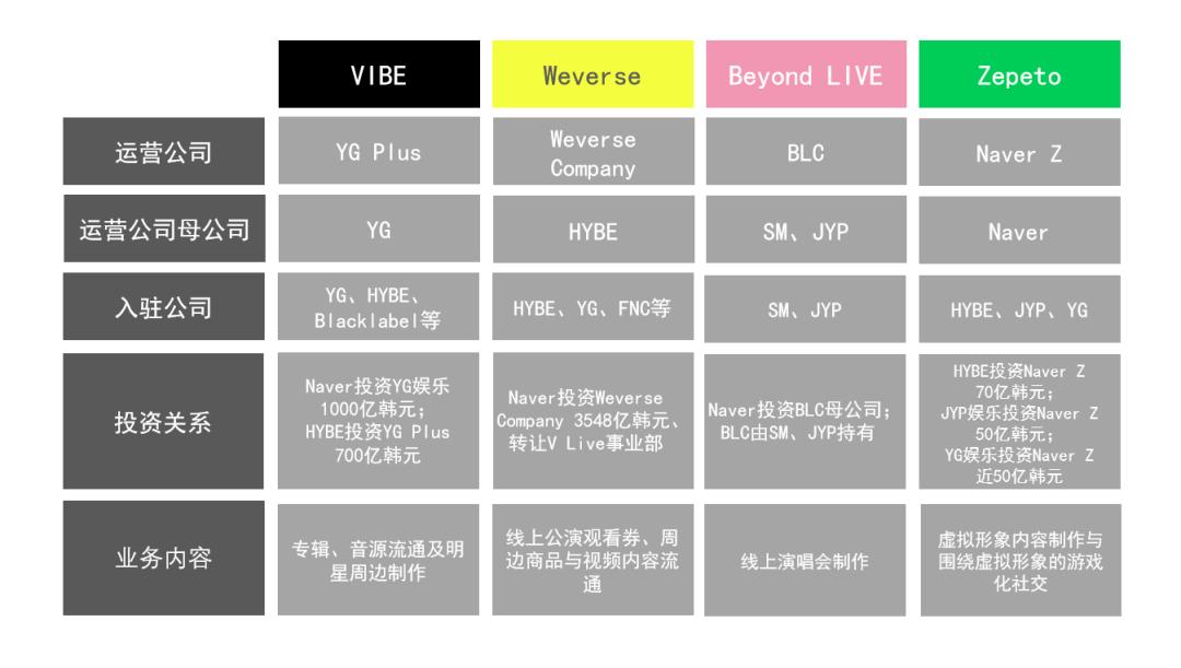 在这样的大背景下,K-POP界初步形成了音乐发行、粉丝社区和线上公演平台大竞争的行业格局,即使是本身都站Naver的四大社,在内部也存在着“小山头”。