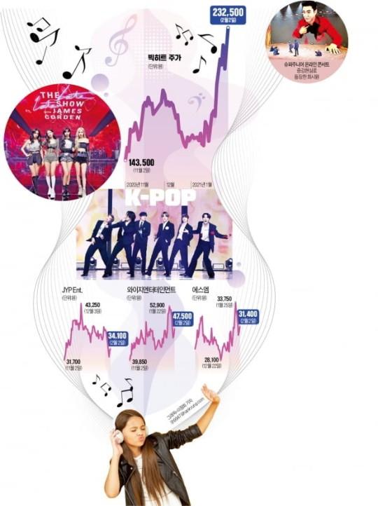 过去一年,因疫情影响,大众线下消费萎缩,构成行业主要收入的线下演唱会严重受阻,跨国活动也无法展开。对于海外销售比重颇高的韩国娱乐产业来说,经营环境从未如此差过,即使是现金流还算充沛的大型企划公司,有时恐怕也会要套用一句柳智敏的出圈金句:“我们公司好像真的要完蛋了!”