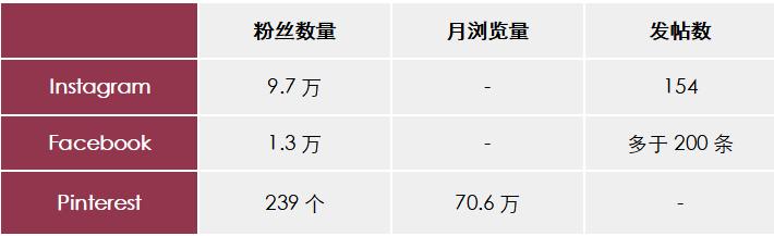 2、社交媒体平台,和一些品牌只是在海外建立了社交媒体账户但没有运营不同,滋色只运营了 Facebook、Instagram 以及 Pinterest 三个媒体平台,但三个平台的数据都还不错。