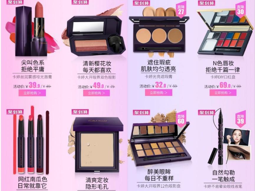 到了 2018 年 5 月,眼影开始有国风元素,7 月蜜粉开始国风化,到了 8 月口红也国风气息明显,至此卡婷主产品的外包装基本完全改为国风元素。后来又和颐和园、清平乐等 IP 合作推出古风联名款。找到合适的品牌定位和品牌外观对于每一个品牌而言都十分重要,而品牌定位很多时候并不能一步到位,依照市场和社会环境不断调整直到找到真正适合自己的,也是一个不错的方法。
