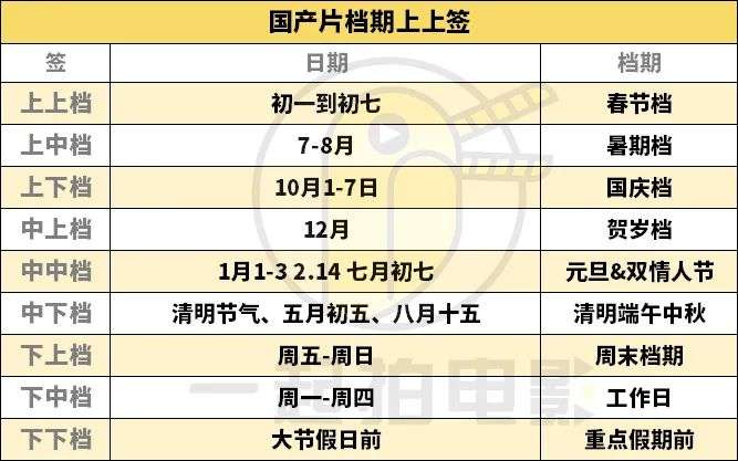 按照中国传统对于官位品阶九品中正制来划分一下目前内地的档期,可以看到处于腰部的中中档和中下档期所处的位置仍然是非常重要的,也是承接重点冷门档期的一个衔接,虽然在重点档期和三日假期中间会存在一个过渡,但能够在这些档期内有一定的票房保障仍然是非常紧要的。