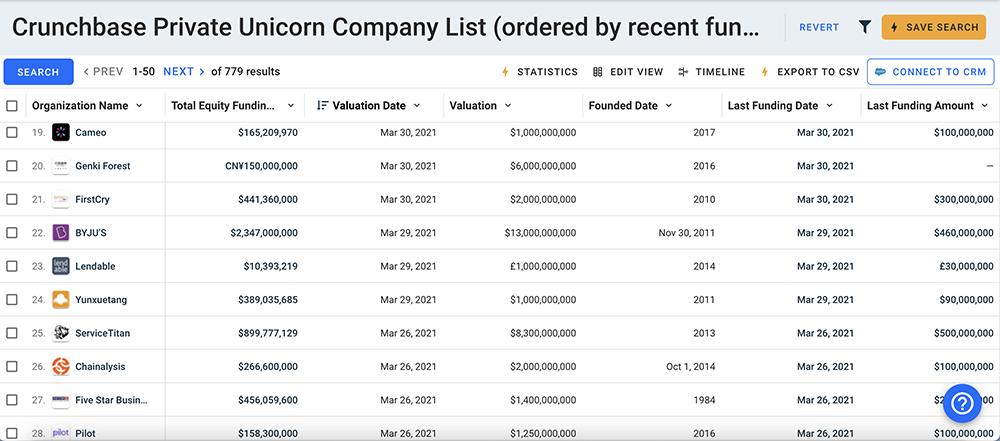 ▲Crunchbase私营独角兽公司部分名单