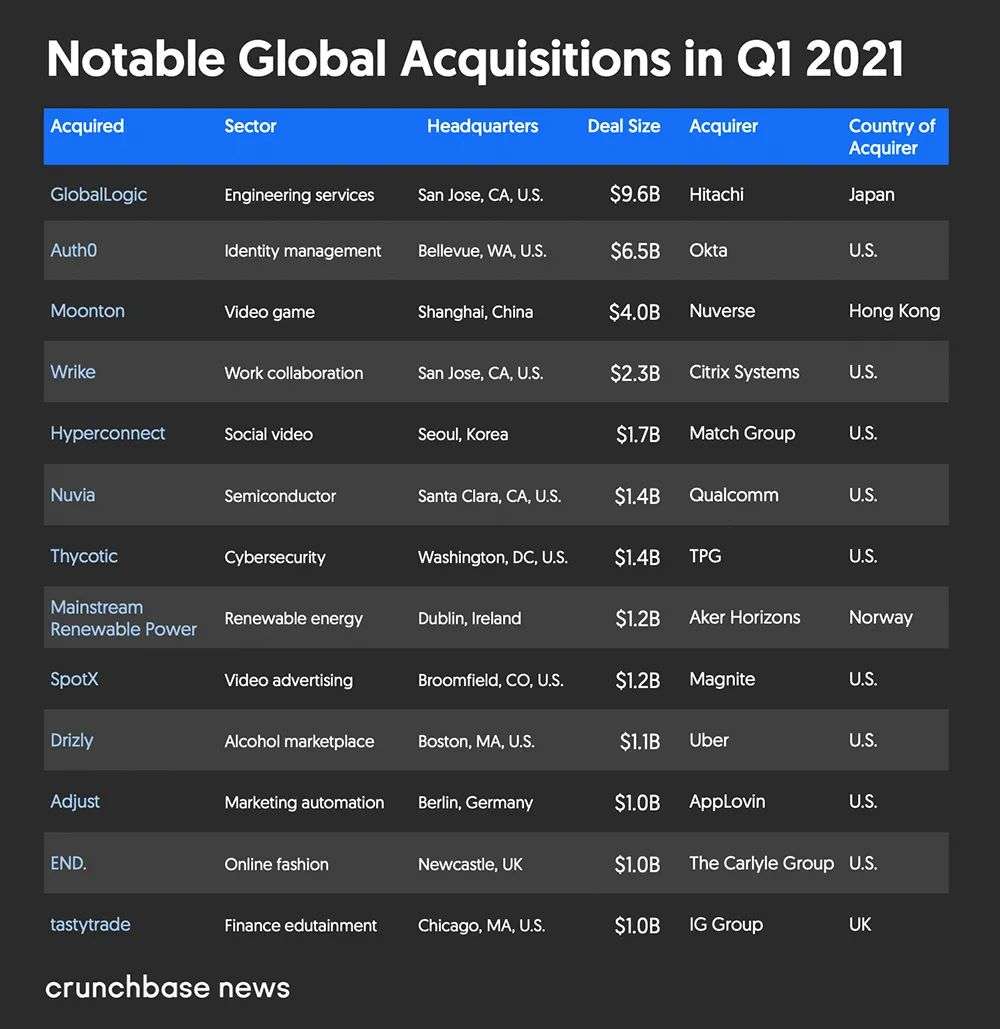 ▲2021年Q1全球知名收购列表