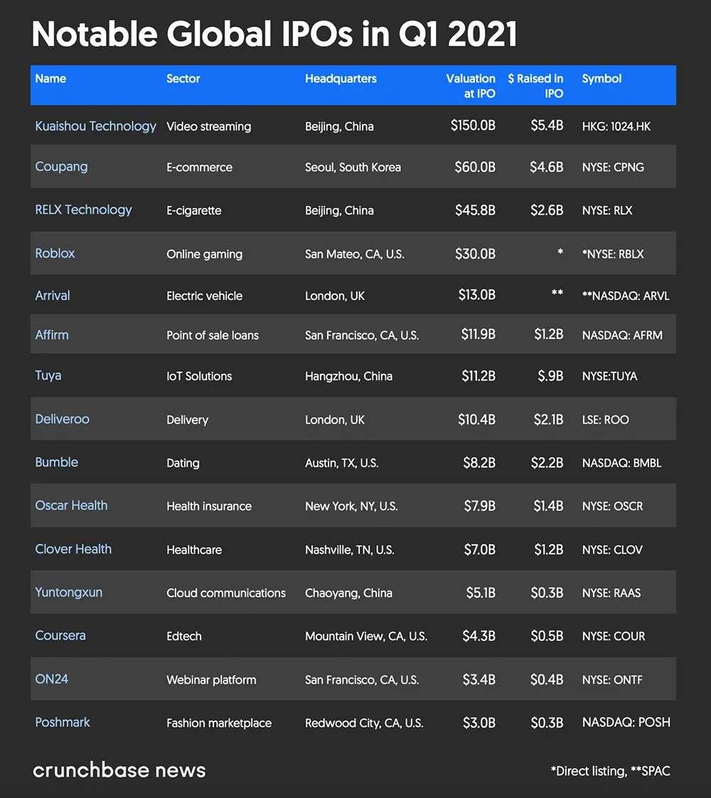▲2021年Q1全球知名IPO列表