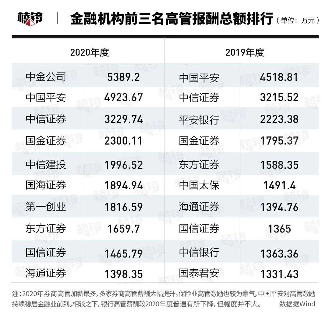 Wind数据显示,中国平安人均薪酬仅为21.47万元,较券商、银行等人均薪酬少了一大截。但平安集团董事长马明哲以高薪揽才闻名业界,在高管薪酬方面,平安集团毫不逊色于中金公司。