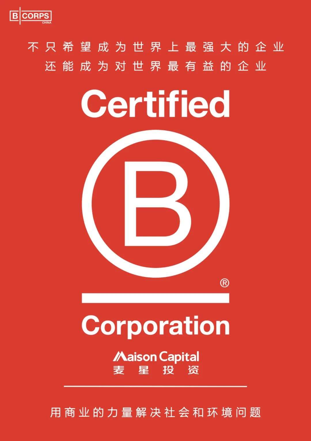 麦星投资成为中国私募股权投资行业第一家获B Corp认证的共益企业