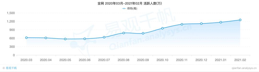 相较于其他二手交易,围绕潮流兴趣的交易社区,天然就具有社群属性,容易形成高粘性的用户活跃和有效的交易闭环。曾经作为球鞋鉴定平台的得物,也逐步发展成目前全网最大的全品类鉴定和潮品二手交易平台。有数据显示,得物在2021年2月最新的活跃用户规模就达到了1250.6万。