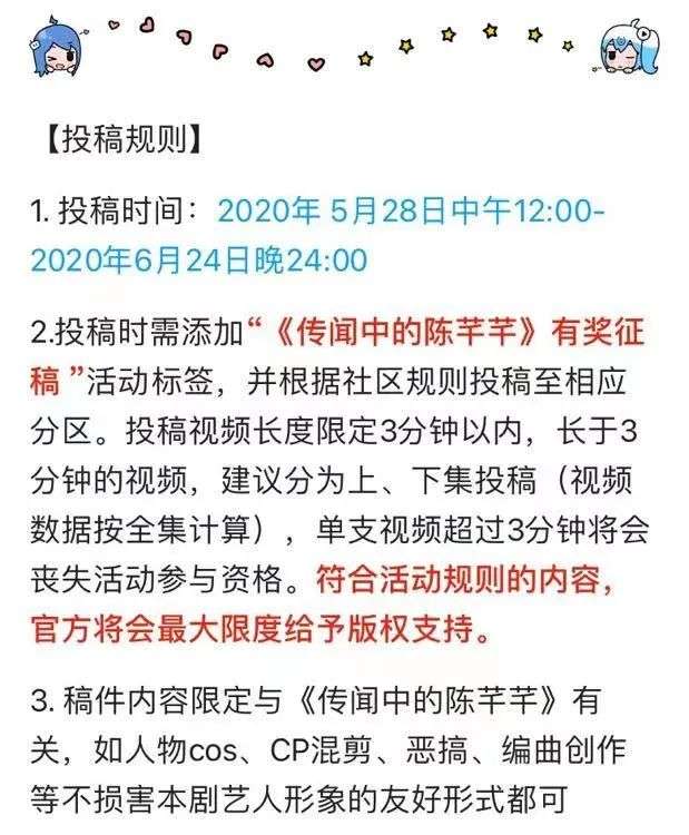 B站《传闻中的陈芊芊》衍生创作活动投稿要求(部分),该活动由B站@腾讯电视剧举办。