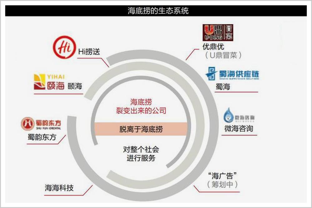 到现在,如果梳理一下海底捞盘根错节的“关系网”会发现,以火锅来定义海底捞已经过时。更准确地说,海底捞是一个以火锅餐饮为中心的生态。