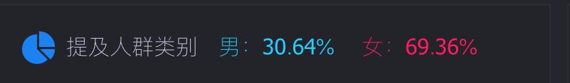 根据时趣洞察引擎数据显示,在易立竞的粉丝中有将近三分之一为男性用户,女性粉丝仍占主导,可以看到,目前1老师在两性群体中都具备一定的认知度。