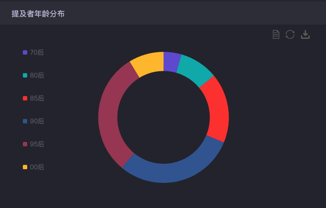 根据时趣洞察引擎,对于易立竞粉丝群体的监测,90后、95后的年轻一代为主要粉丝群体,两者更是势均力敌,占据半壁江山,可见1老师的影响力,在年轻用户中表现更为突出。另外,值得一提的是,在85后群体中,1老师也具备一定的粉丝基础,对于一些主打高质的品牌也有一定的价值。